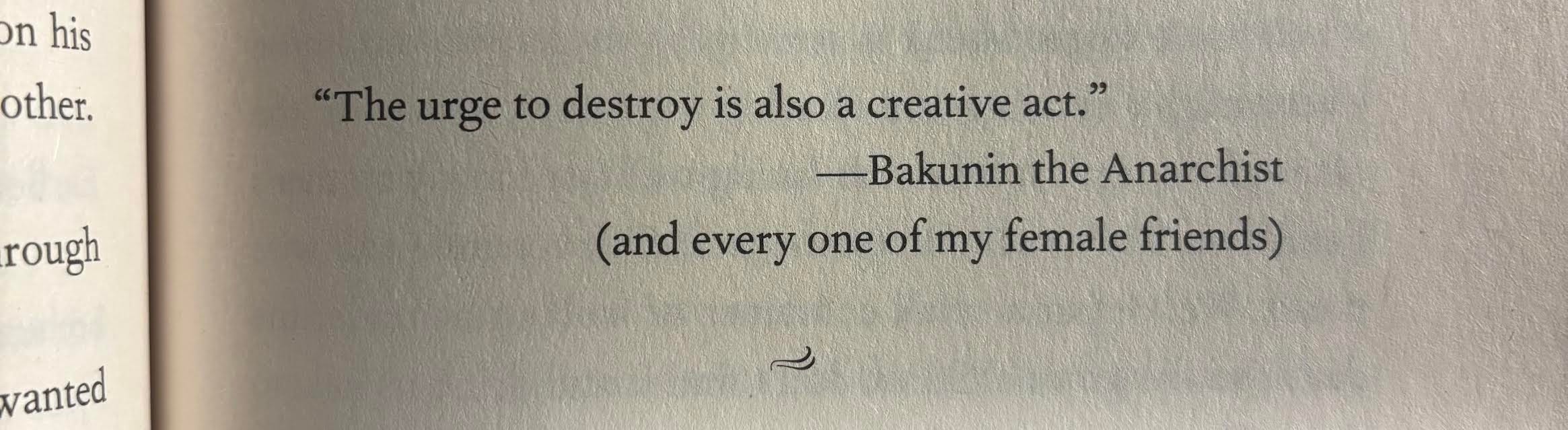 So I tried their suggested approaches, which were reasonable and smart. But I still sort of felt like I was repeatedly running up and hurling myself against a brick wall that I needed to be climbing over. Then this weekend it occurred to me that instead of running into the wall and trying to scale it, I should probably just burn it down. I needed to write the darkest, bloodiest, most freewheeling version of this story first, the version I wouldn’t want anyone else to read but that I knew was the absolute dirtiest, gutsiest truth. And then I could fix it all up later, figure out what I was willing to share and what I wasn’t. Write the worst version to get to the best version, I told myself.