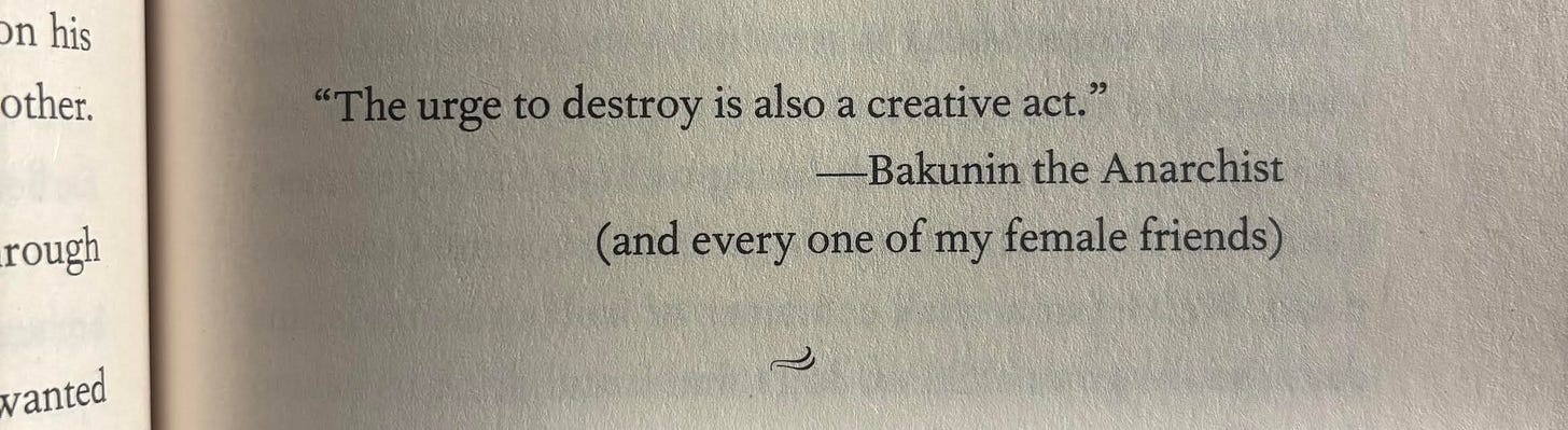 I don’t know exactly why that was the trigger I needed to get to the next place or maybe I was already on my way there, fueled by the feedback and the myriad drafts and also the just living of my fucking life for fifty plus years and also things take time, they just do. But anyway I whizzed through a thousand new words this morning and all of a sudden a solid new draft appeared. So we are getting somewhere, all inspired by this simple idea: When all else fails, burn it down.